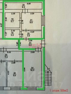- 50 м² (состоит из 2 кабинетов + 2 помещений для хранения, собственный туалет, индивидуальная входная группа)
