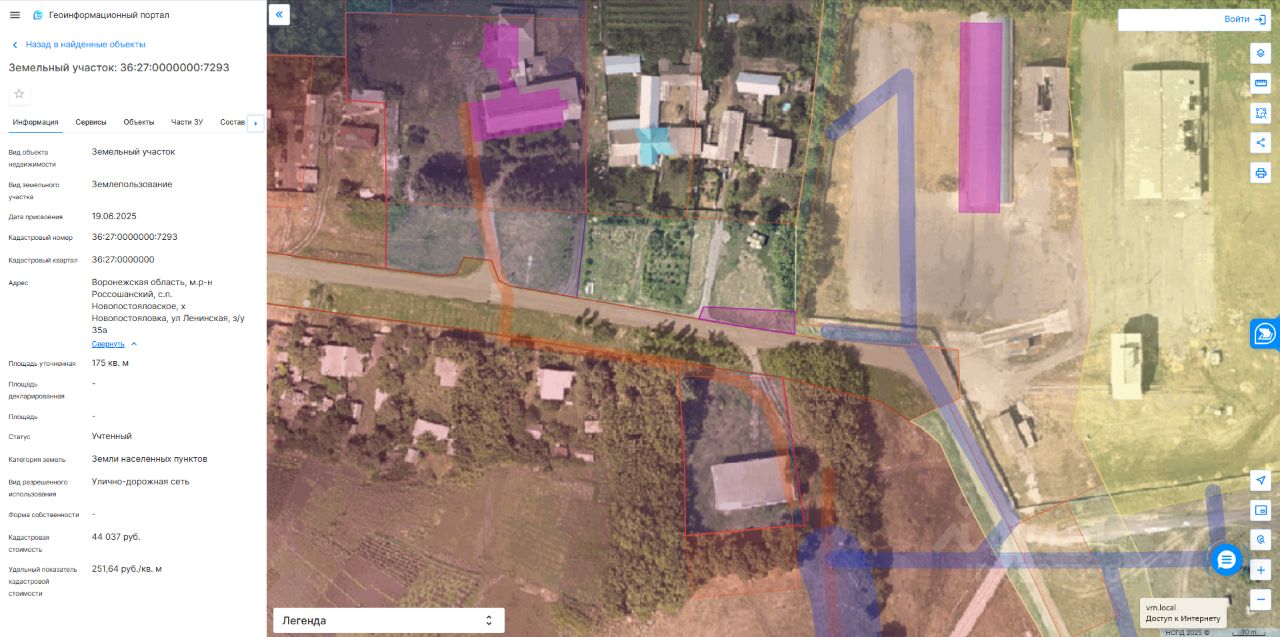 Земельный участок, относится к категории земель: земли населенных пунктов, государственная собственность на который не разграничена, с кадастровым номером 36:27:0000000:7293, площадью 175 кв.м.
