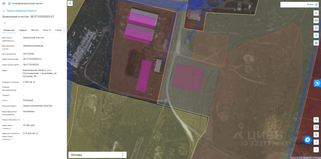 Земельный участок, относится к категории земель: земли населенных пунктов, государственная собственность на который не разграничена, с кадастровым номером 36:27:0530003:27, площадью 3000 кв.м, расположенный по адресу: Воронежская область, р-н Россошанский, с. Анцелович, ул. Кутузова, 29.