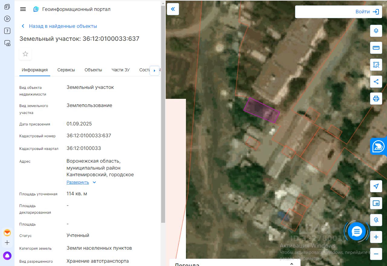 Земельный участок из категории земель населенных пунктов, разрешённое использование: для ведения личного подсобного хозяйства (приусадебный земельный участок), площадью 114 кв.м. Местоположение: Воронежская область, муниципальный район Кантемировский, городское поселение Кантемировское, рабочий поселок Кантемировка, улица Декабристов, 131/12а