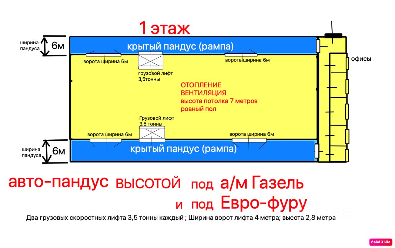 Два грузовых скоростных лифта с авто-пандуса по 3,5 тонны каждый.