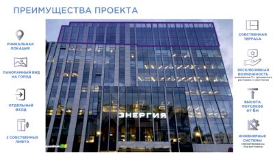 Эксклюзивное предложение по аренде помещений на 8 и 9 этажах с собственной террасой в БЦ ЭНЕРГИЯ, расположенного по адресу г. Воронеж, пер. Красноармейский 7А, под реализацию и открытие проектов ресторанов с особыми преимуществами: