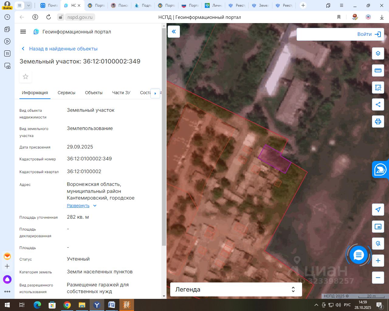 Земельный участок из категории земель населенных пунктов, разрешённое использование: Размещение гаражей для собственных нужд, площадью 282 кв.м., Местоположение: Воронежская область, муниципальный район Кантемировский, городское поселение Кантемировское, рабочий поселок Кантемировка, территория СПТУ-46, земельный участок 5а