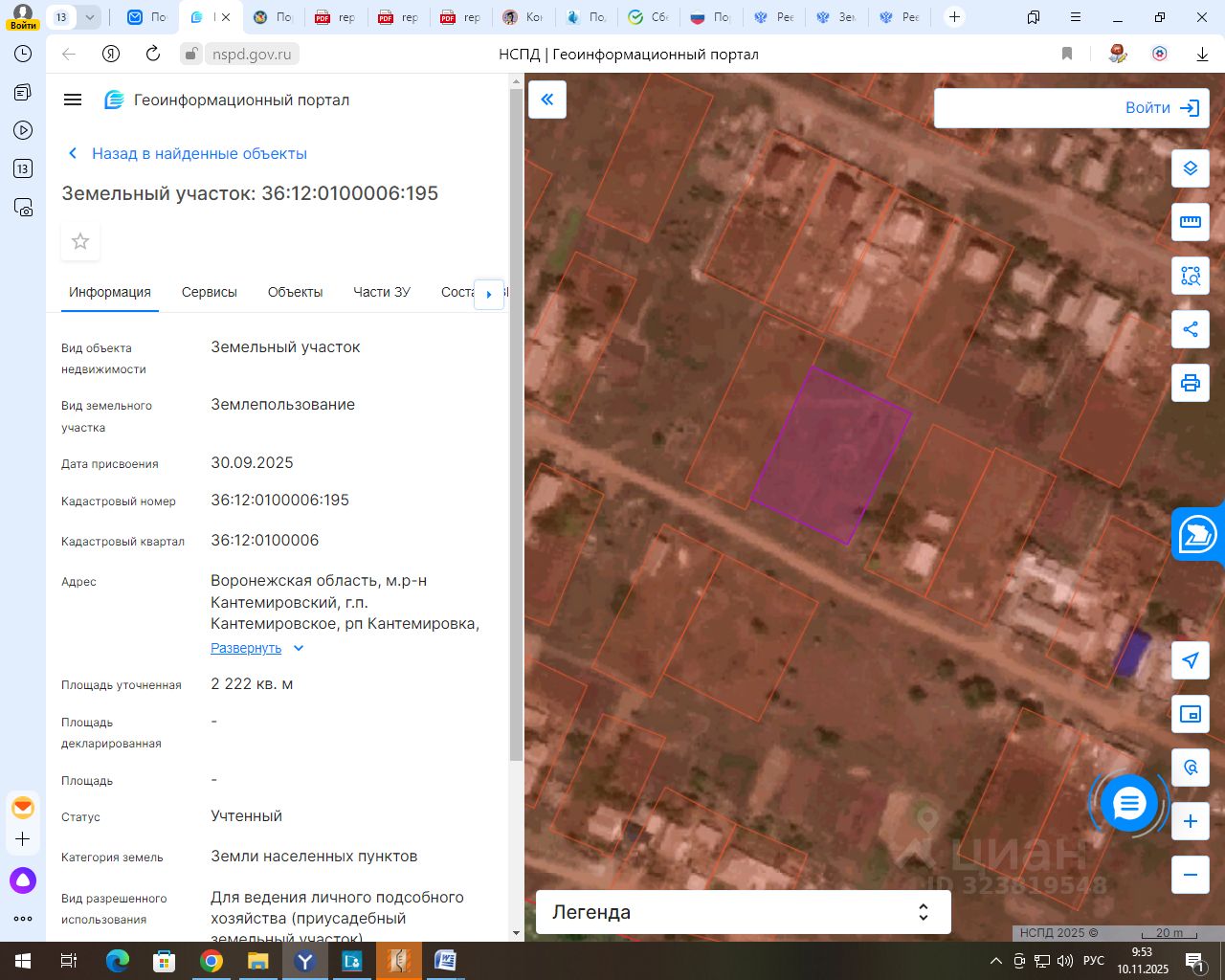 Земельный участок из категории земель населенных пунктов, разрешённое использование: для ведения личного подсобного хозяйства (приусадебный земельный участок), площадью 2222 кв.м, Местоположение: Воронежская область, м.р-н Кантемировский, г.п. Кантемировское, рп Кантемировка, ул Народная, з/у 23а