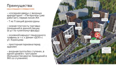 - низкая плотность торговых помещений в данной секции (6 шт. по уличному фасаду)