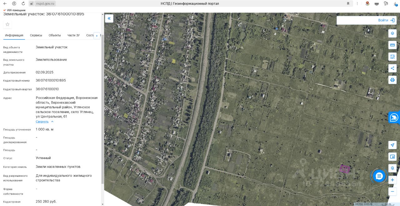 земельный участок площадью 1000 кв.м., расположенный по адресу: Воронежская область, Верхнехавский район, с. Углянец, ул. Центральная, земельный участок 61, с видом разрешенного использования: для индивидуального жилищного строительства Кадастровый номер земельного участка: 36:07:6100010:895. Земельный участок, относится к категории земель "земли населенных пунктов", государственная собственность на который не разграничена.