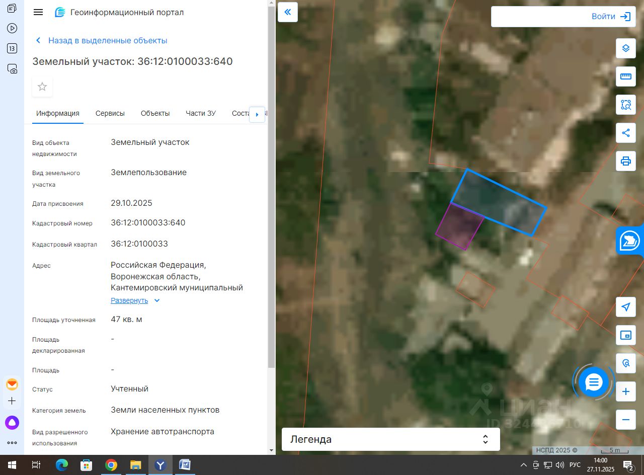 Земельный участок из категории земель населенных пунктов, разрешённое использование: хранение автотранспорта, площадью 47 кв.м. Местоположение: Воронежская область, муниципальный район Кантемировский, городское поселение Кантемировское, рабочий поселок Кантемировка, улица Декабристов, 131/12а