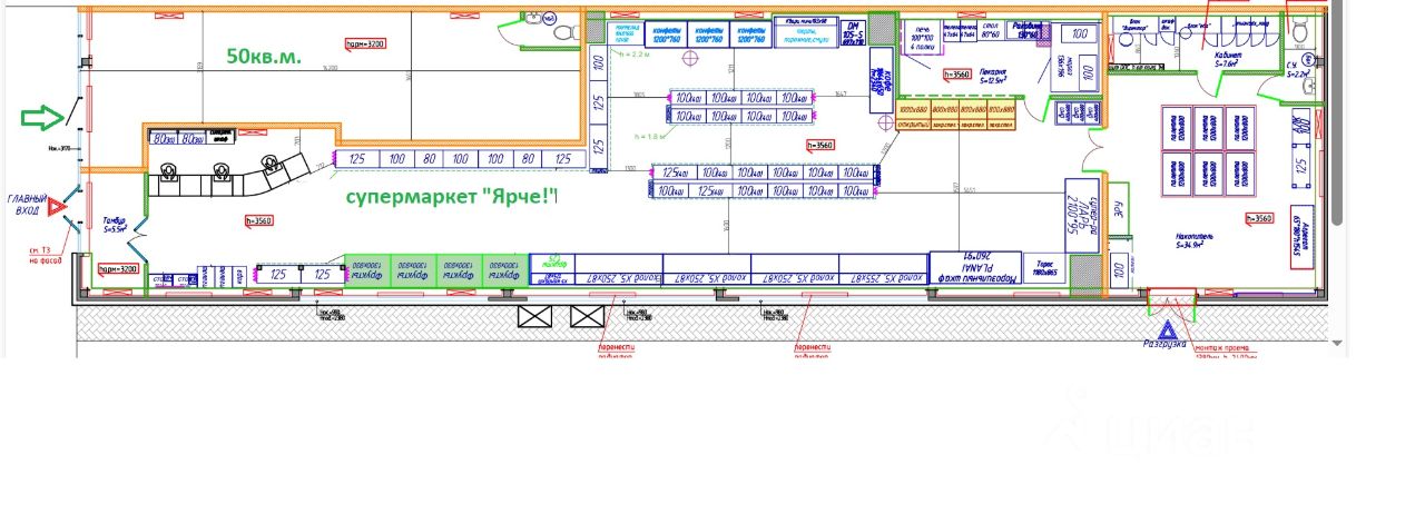 Предлагается в аренду помещение, расположенное дверь в дверь с сетевым супермаркетом "Ярче!". Площадь 50кв.м, с отделкой, санузлом, отдельный вход (возможность работать в свободно графике, в т.ч. круглосуточно). На фасаде предусмотрено место под вывеску.