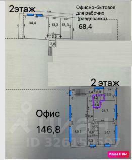 Офисы 150 м/кв этаж 2; и Раздевалка для рабочих 68,4 м/кв , Этаж 2