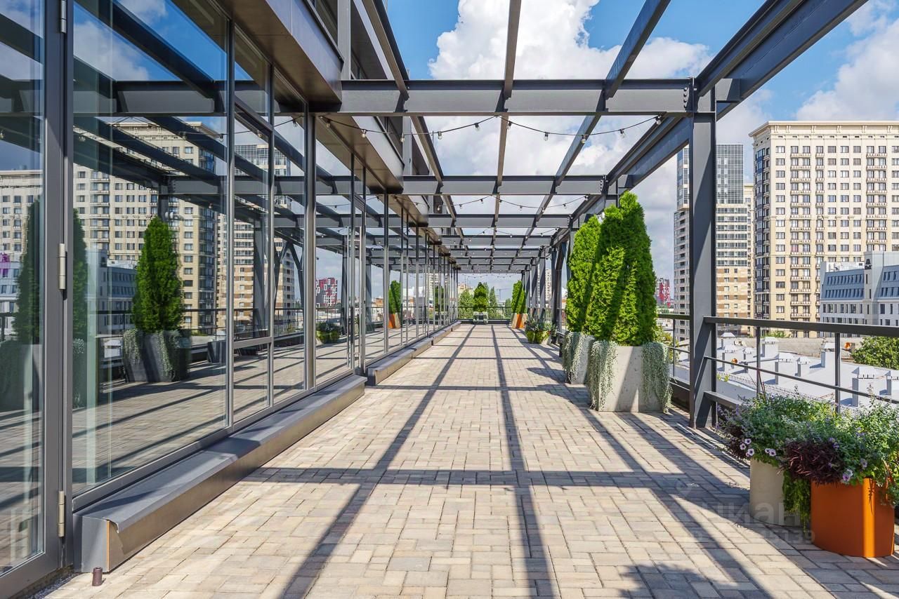 Персональный выход из офиса на террасу с головокружительным видом на город.