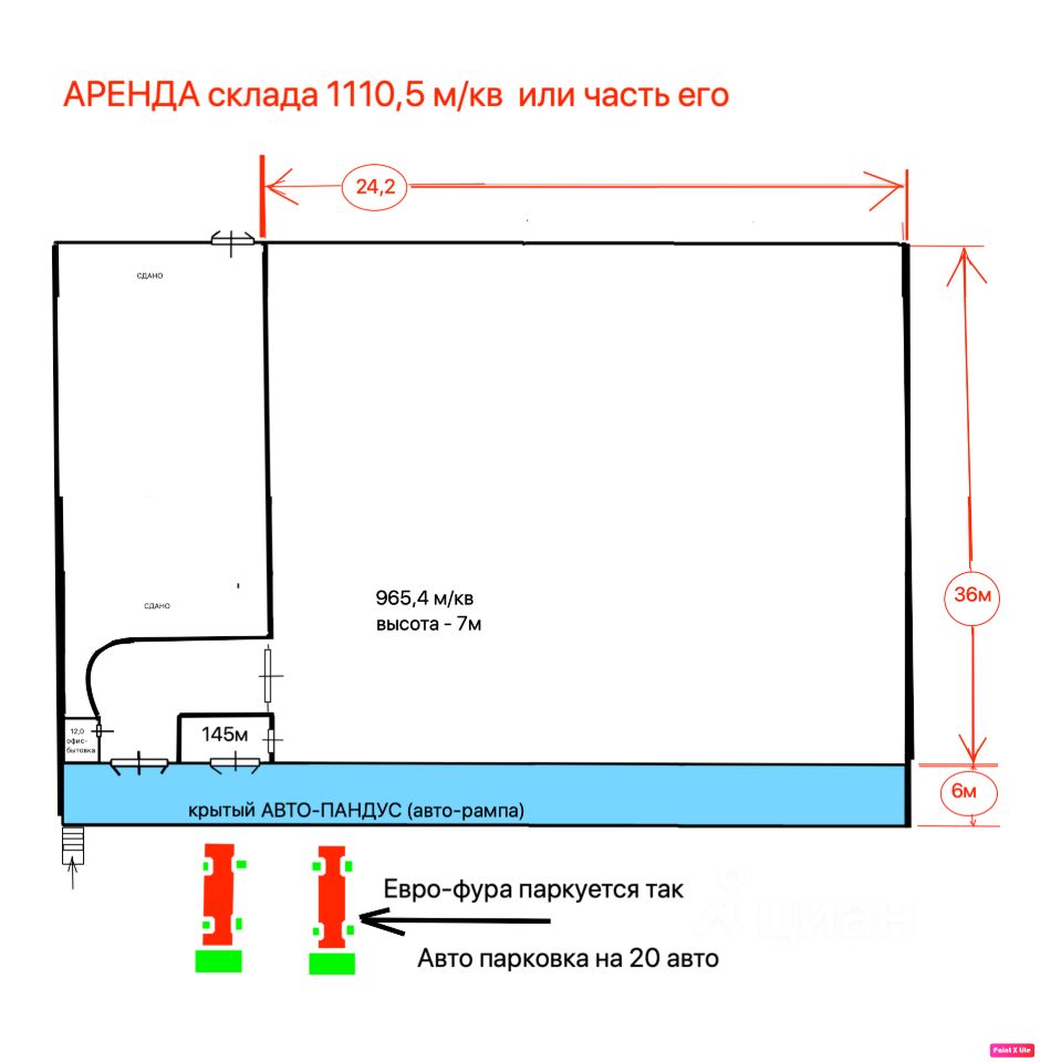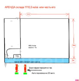Аренда склада 1110,5 м/кв с высотой ворот на авто-пандусе (авто-рампа)