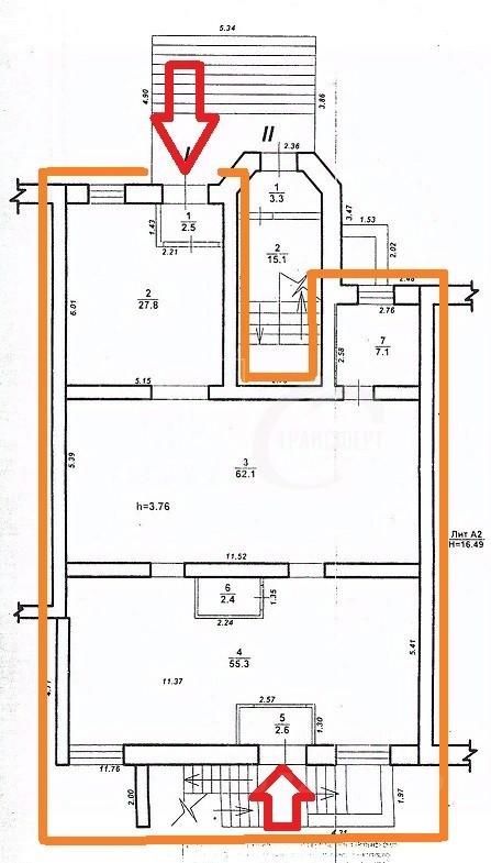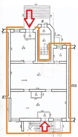 Отдельная входная группа, два входа (с двух сторон). Состоит из четырех помещений 62.1, 55.3, 27.8, 7.1 кв.м, есть сан.узел. Высокий потолок - 3.76 м.
