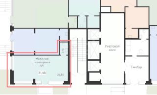 - Помещение угловое, расположено рядом с первым подъездом и въездом в подземный паркинг