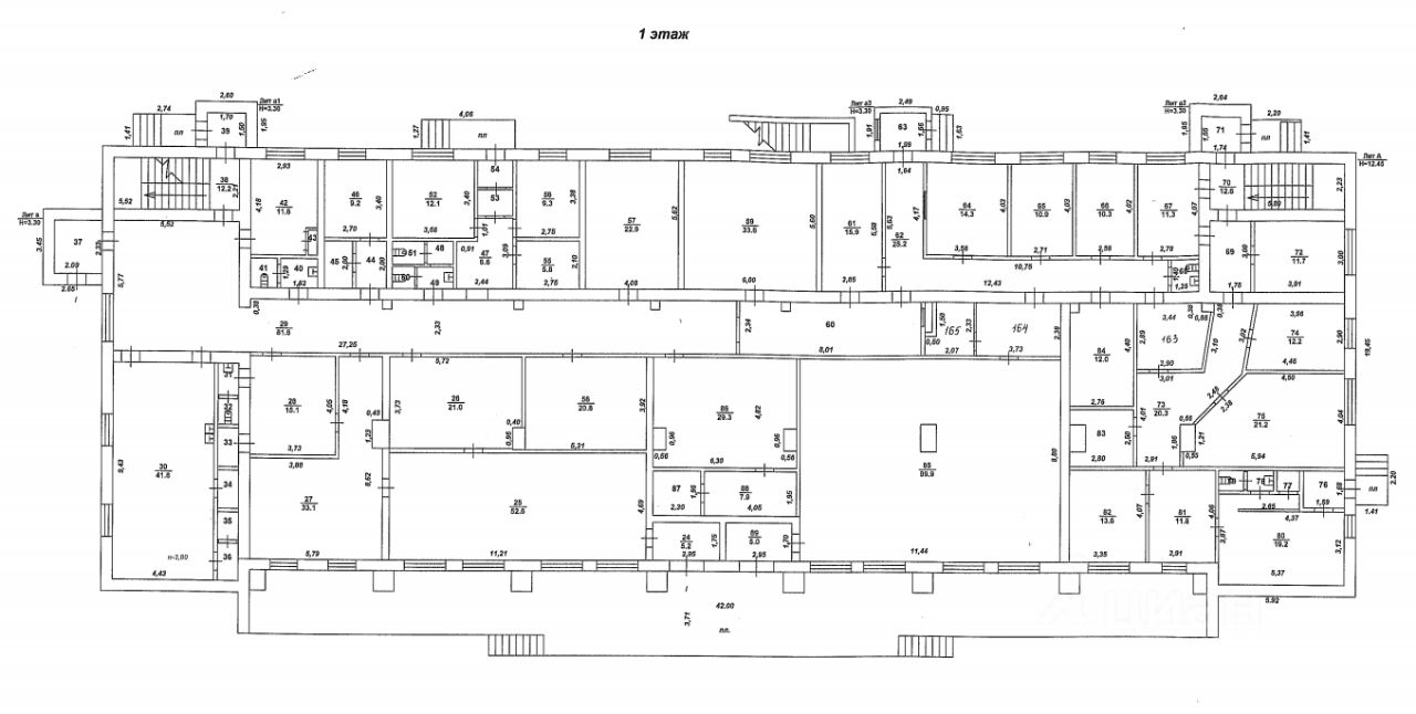 На первом этаже предлагаются помещения площадью: 6 кв.м.; 22 кв.м.; 16 кв.м.; 33 кв.м.