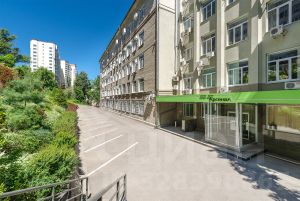 Бизнес-центр окружён ухоженной чистой территорией с живописным зелёным склоном;