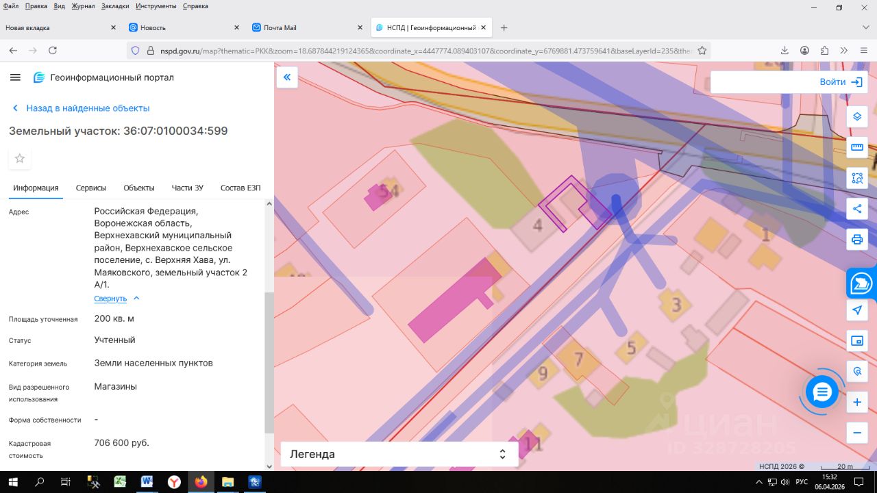 Земельный участок с кадастровым номером 36:07:0100034:599 площадь 200 по адресу Российская Федерация, Воронежская область, Верхнехавский муниципальный район, Верхнехавское сельское поселение, с. Верхняя Хава, ул. Маяковского, земельный участок 2 А/1.