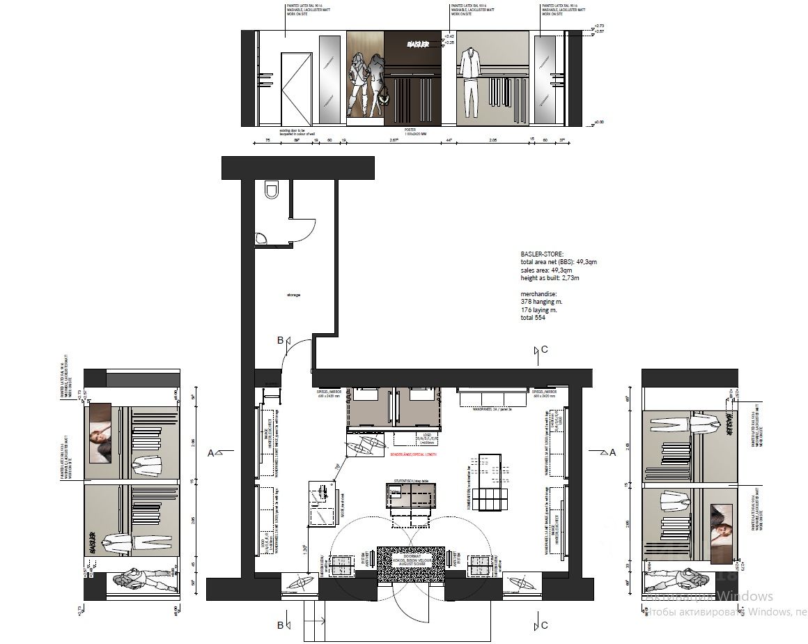 Планировка: торговый зал - 48 кв.м, подсобное помещение с с/у