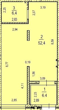 Площадь65,5 м²