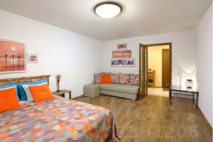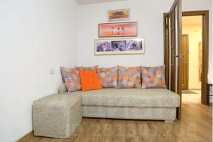 - Удобный 2х-спальный раскладывающийся диван в комнате.