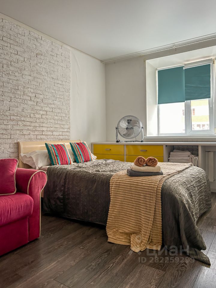 Большая кровать, ванная комната и кухня со всем необходимым для проживания. Установлен кондиционер.