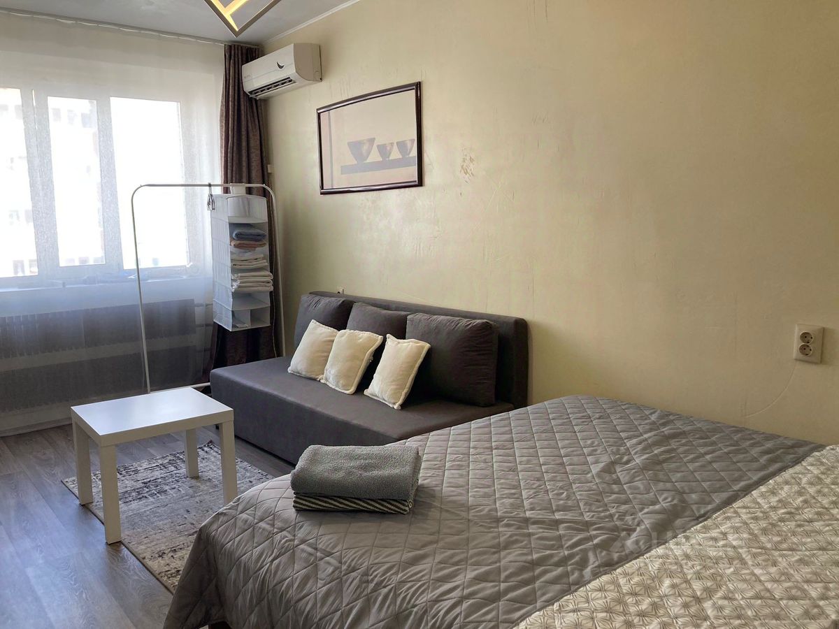 Большая кровать, ванная комната и кухня со всем необходимым для проживания. Установлен кондиционер.