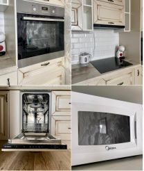 Полностью укомплектованная квартира: водонагреватель, кондиционер, микроволновая печь, варочная панель, духовной шкаф, холодильник, чайник, столовые приборы, посуда для приготовления и приема пищи, чай, кофе, телевизор со смарт TV, Wi-fi мг/б, утюг, стиральная машина, посудомоечная машина, сиденье унитаза для детей, кран с фильтром питьевой воды.