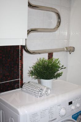 Квартира оснащена новой бытовой техникой - электроплита, микроволновая печь, электрочайник, холодильник, стиральная машина; мебелью - диван на 2 спальных места, кресла, шкаф для одежды, мини-стенка для видео/аудио техники, прихожая, кухонный гарнитур, обеденный стол, табуреты, комфортная чистая ванная комната; застекленная освещённая лоджия (кафель, сушилка для белья, шкаф для хранения вещей).