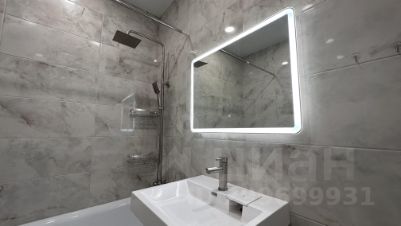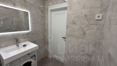 - В санузле стиральная машина. Зеркало с подсветкой . Новая чистая сантехника.