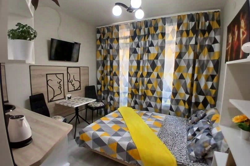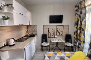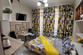 Совершенно новая миниатюрная, но максимально функциональная квартира-студия. Продумано всё до мелочей . Кухонная и обеденная зона. Новая двуспальная кровать . Полноценная ванная комната. Дополнительное место отдыха на просторном, панорамном балконе, с прекрасным видом на город. Максимальное количество гостей двое,не младше 21 года. Обязательное наличие документов и залога.