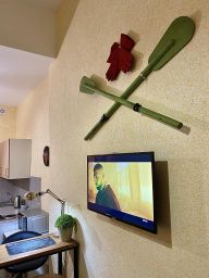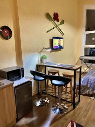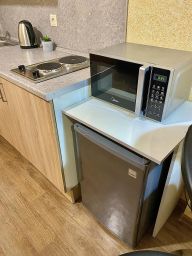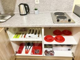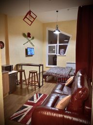 В квартире есть все необходимое для комфортного проживания: 4 спальных места (большая двуспальная кровать, раздвижной диван), чистое постельное белье, полотенца на каждого человека, жидкое мыло, туалетные принадлежности. К услугам гостей: плоский ТВ, холодильник, СВЧ, электрический чайник, стиральная машинка-автомат, варочная панель, утюг, фен, гладильная доска, сушилка для белья. Полный набор посуды, и всех необходимых столовых приборов. В апартаментах высокие потолки - 4.5 метра.