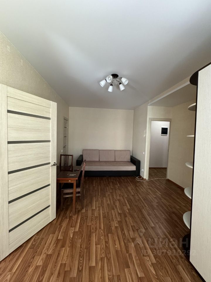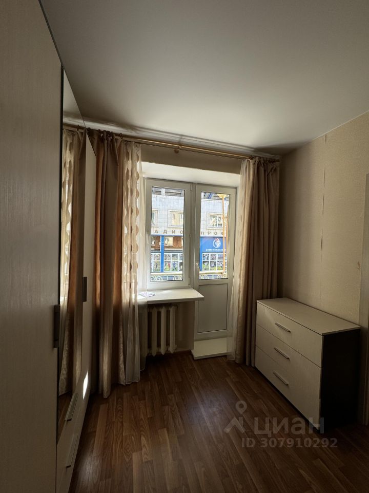 В спальне большая кровать, шкаф, в зале диван, стол, шкаф, комод.