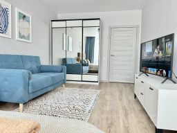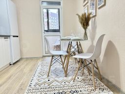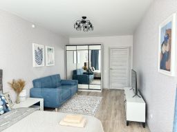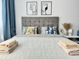 Чистая квартира с новым ремонтом и современной бытовой техникой, этаж 17 из 17, лоджия с панорамным видом. Банные полотенца на каждое спальное место. Утюг и гладильная доска, сушилка, набор всей посуды и столовых приборов на 4 -персоны. Телевизор Smart TV + интернет ТВ, YouTube и тд. (бесплатно), холодильник, СВЧ, варочная панель, электрический чайник, интернет Wi-Fi (бесплатно). Ванная / стиральная машинка автомат