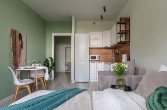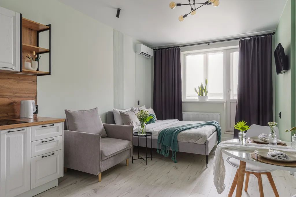 Уютная квартира-студия с качественным сервисом и панорамным видом.