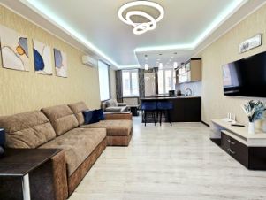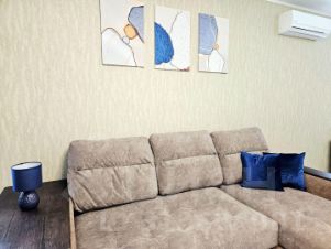 Квартира подходит для расположения 4 гостей. Для отдыха имеется двуспальная кровать в изолированной спальне. В гостиной удобный раскладывающийся диван. Для вашего комфорта в квартире имеется: 2 телевизора Smart - TV, бесплатный Wi-Fi, 2 кондиционера, посудомоечная машина, духовой шкаф, индукционная варочная панель, микроволновая печь, стиральная машина, набор посуды, кухонных принадлежностей, чай, кофе, ванные принадлежности, зубные наборы и одноразовые тапочки