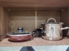 В квартире двуспальная кровать. Полностью оборудованная кухня: плита, микроволновая печь, холодильник, посуда, столовые приборы.