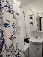 Оборудованная кухня с техникой, посудой и столовыми приборами. Также постельное белье, полотенца, фен и средства гигиены.