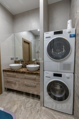 Есть стиральная и сушильная машины, двухкамерный холодильник, телевизор, кондиционер.