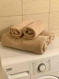 •Чистое постельное белье, полотенца , на каждого человека, жидкое мыло, туалетные принадлежности.