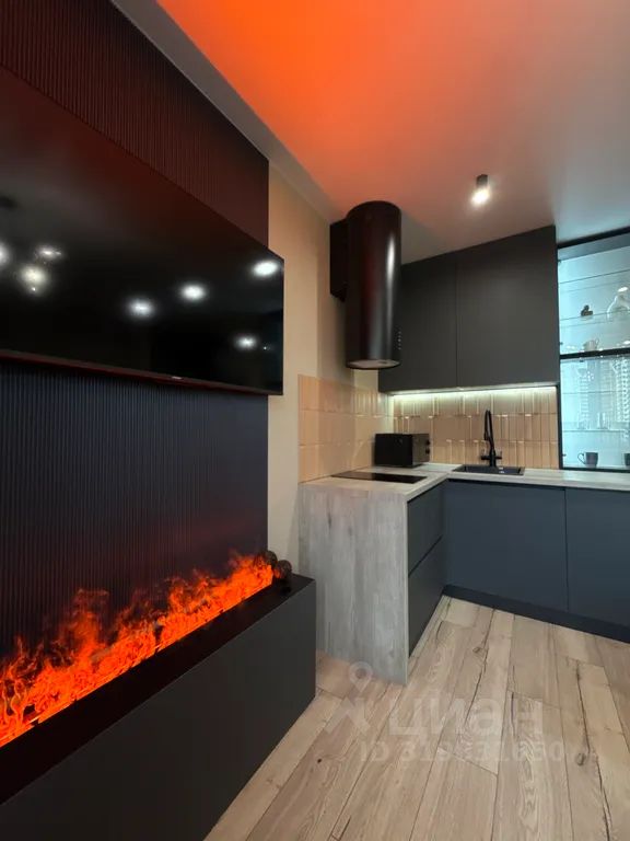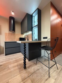Помещение разделено на зоны с помощью освещения. Оно разное: тёплое и холодное, яркое и приглушенное, с его помощью можно придать комнате уют и гармонию. Проживание в этой квартире принесет её гостям радость и удовольствие.