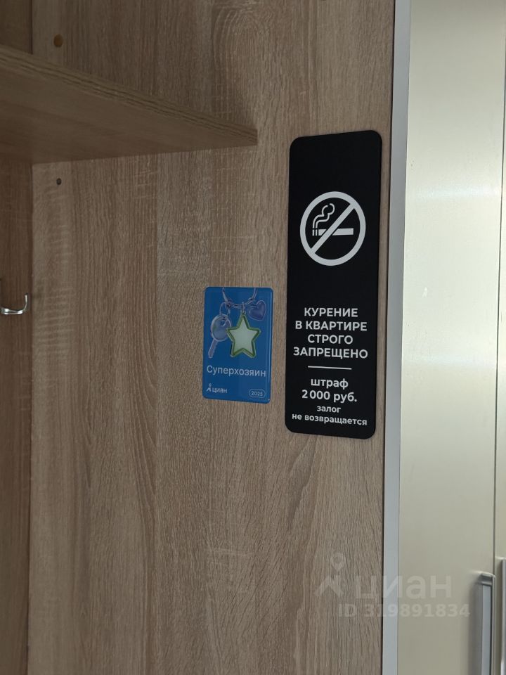 Курение в квартире - штраф 2.000₽ (залог не возвращается!).
