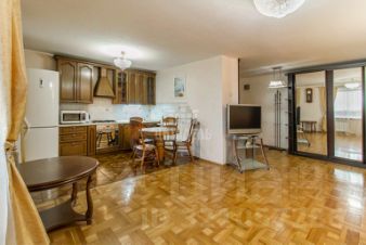 В квартире выполнен евроремонт в светлых тонах из качественных материалов (паркет, итальянская плитка).