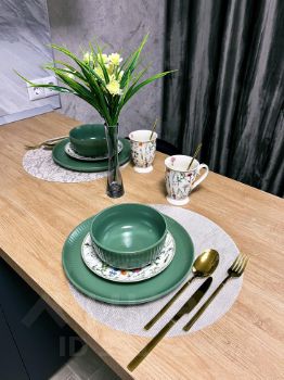 - Полностью оборудованная кухня с бытовой техникой (холодильник, микроволновка, плита , посудомоечная и стиральная машина, чайник, кондиционер);