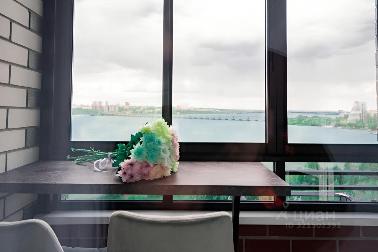 На лоджии с шикарным видом на Воронежское море и парк организовано рабочее место, которое прекрасно подойдёт как для работы, так и для вечерних ужинов на фоне заката и завтрака на рассвете.