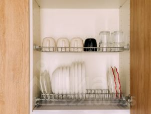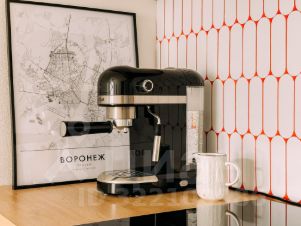 Эргономичная кухня с кофемашиной, молотый кофе и барная стойка на лоджии с видом на Воронеж сделают ваши завтраки особенными. На оборудованной кухне есть вся посуда и техника, чтобы приготовить и сервировать различные блюда