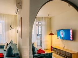 Комфорт. Мощный кондиционер .Два больших шкафа - они нужны для ваших вещей. Питьевая вода из фильтра с обратным осмосом - уже есть на кухне. Чай, кофе, специи - уже в квартире.Бесплатный Wi-Fi, SMART TV, Кинопоиск. Утюг и гладильная доска.