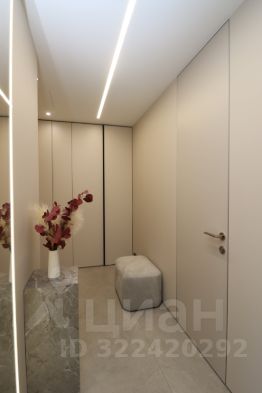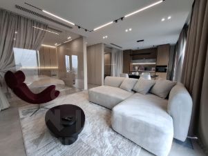 Современная квартира, которая включает в себя, светлую кухню-гостиную формата open space, мастер-спальню с приватной атмосферой, дополнительную комнату, вместительную гардеробную, просторный холл и санузел в отделке под натуральный камень.