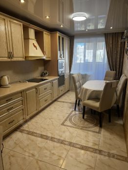 Сдаётся просторная трёхкомнатная квартира с евроремонтом на шестом этаже десятиэтажного кирпичного дома. Общая площадь составляет 99 кв. м, жилая площадь — 86 кв. м. Дом был построен в 2001 году. Окна выходят во двор, поэтому в квартире всегда тихо и спокойно.