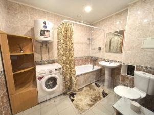Квартира имеет косметический ремонт и полностью готова для комфортного проживания. В комнате и на кухне есть необходимая мебель. Из техники: кондиционер, холодильник, телевизор и стиральная машина. Ванна в санузле позволит расслабиться после трудового дня.