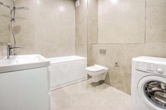 В квартире два санузла, один из них совмещенный с ванной и стиральной машиной.