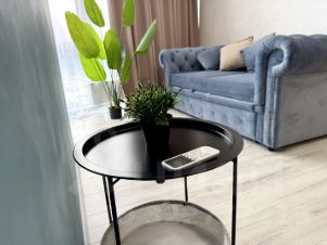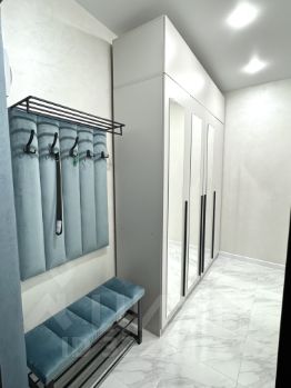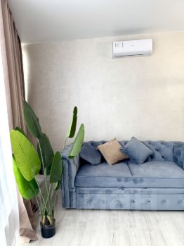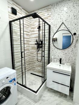 В квартире выполнен качественный современный ремонт. Предусмотрено все для комфортного проживания: на кухне и в комнате есть вся необходимая мебель, а также полный комплект встроенной техники: варочная панель, посудомоечная машина, духовой шкаф, микроволновая печь. холодильник, телевизор, стиральная машина, кондиционер, утюг и пылесос. Ванная комната оборудована душевой кабиной, что особенно удобно для динамичного ритма жизни.